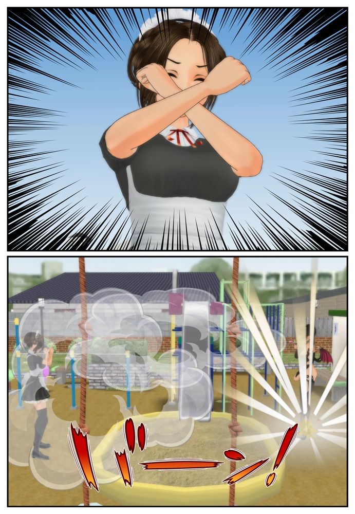 この漫画は、ヒロインに化けて二人の仲間をたぶらかし、ヒロインをやっつけた後、二人をアジトに誘い込み、悪の使者二人に仲間の体を乗っ取られる、或いは入れ替わるというところで終わる予定です。