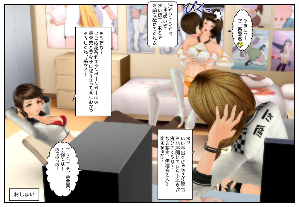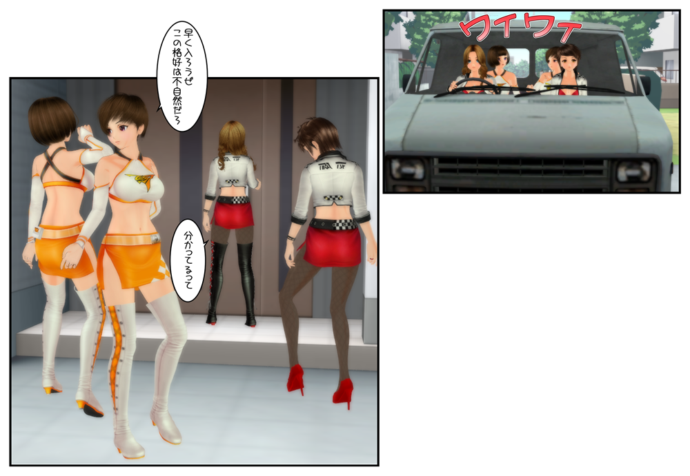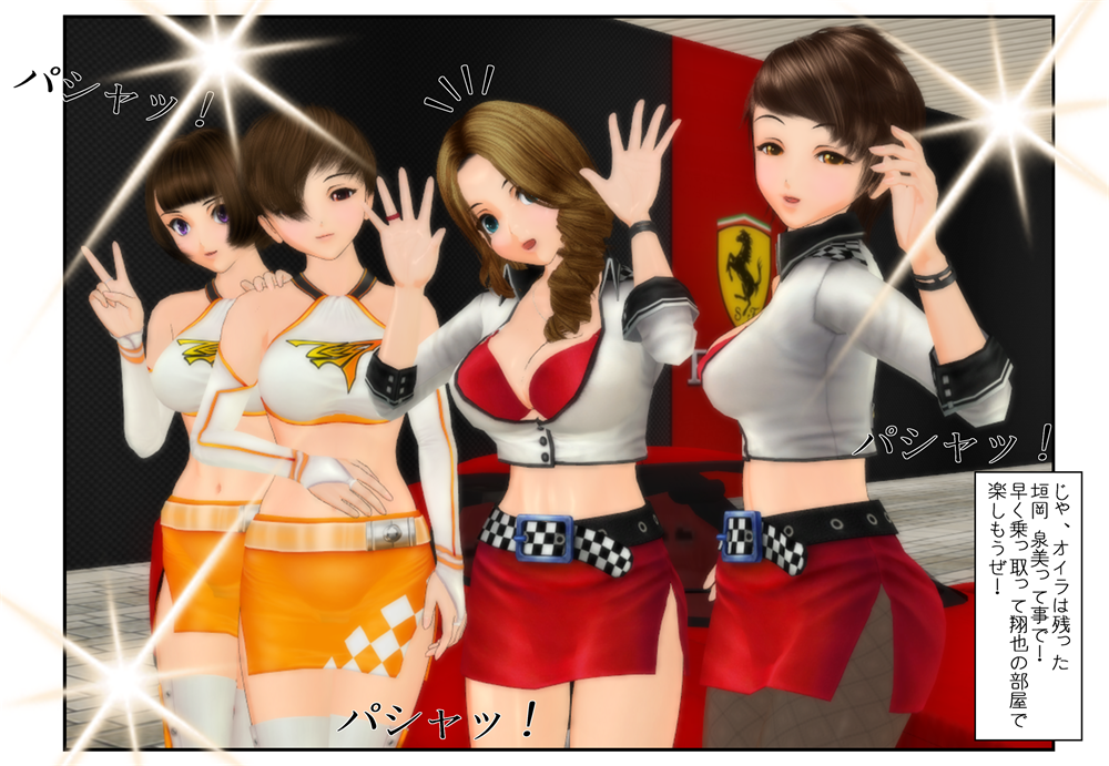 2015年01月11日 お持ち帰り! とあるイベント会場に現れた男子中学生4人の魂。 彼らはその世界で超有名なキャンペーンガールを自分の家にご招待……いや、お持ち帰りしますw 以前に作った漫画とは関連がありません。 ええ、乗り移るシーンを作りたかっただけなんです。 それにしても、こんなに美人&キュートな女性がいたら、ぜひ身体を貸していただきたいものです(^^ < 前の記事次の記事 > コメント コメント一覧 (4) 1. タイ人ですけど。 2015年01月11日 03:45 一つのシーンで 4人! 皆の表現も完璧。 その上Special Effectsまで。。。 やっぱりTSの世界は Tiraさんが重要な方です。 2. Tira 2015年01月11日 10:13 >タイ人ですけどさん ありがとうございます。 4人同時憑依は初めてですね(^^ 今はTSF界にたくさんの素敵な作品を作る方がいらっしゃいますし、商用でも昔とは比べ物にならないほど魅力的な漫画や小説が出ています。 私は好きな事をチョコチョコ楽しんでいるだけですよ! 3. ts-daisuki 2015年01月11日 23:27 この男子中学生達は、恐らく憑依は初めてではないでしょう。 最初は同級生の女子中学生から、少し年上の女子高生へと次第にエスカレートしていき、キャンペーンガールになったに違いないと、想像を膨らませています。 4. Tira 2015年01月12日 02:14 >ts-daisukiさん きっとそんな感じがしますね。 クラスメイトの女の子に乗り移ったことがあるのでしょうか!? 徐々に完成されてゆく女性の肉体を楽しむなんて、贅沢な男の子達ですw コメントフォーム 名前 コメント 記事の評価 リセット リセット 顔 星 情報を記憶 コメントを投稿する トラックバック