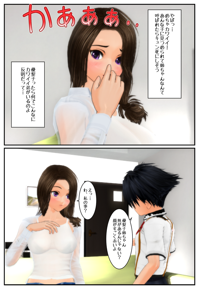 2015年02月27日 たまにはこういうのも…… ショタ好きの萌は、何故か友達の優梨子の姿になり、彼女の家にいた。 意味が分からない萌だが、優梨子の弟を見て鼓動が熱くなった。 萌の大好きなショタっ子の弟に理性が崩れた萌は、優梨子の立場を利用して カワイイ弟を食べちゃおうと思った……という感じです。 まだ食べてませんけどw OD+ショタというジャンルはあまり無さそうなので、ちょっとだけかじってみました(^^ < 前の記事次の記事 > コメント コメント一覧 (3) 1. モカ 2015年02月27日 07:55 食べかけた瞬間、弟は優梨子で優梨子の姿に戻り百合プレーとかになれば面白い。 2. ts-daisuki 2015年02月27日 23:29 やはり、ショタとセクシーレディとの入れ替わりが王道かと。 元に戻ろうとして、お互いに慣れない体で必死になって色々なプレイを試すシーンなんかがいいですね。 3. Tira 2015年02月28日 22:42 >モカさん 今回は純粋にショタを楽しむ内容になっているので、ここから百合にはならないですね(^^; また別のストーリーで! >ts-daisukiさん ギャップ萌えが入っていますよね! 元に戻ろうと四苦八苦する姿も良いものです(^^ コメントフォーム 名前 コメント 記事の評価 リセット リセット 顔 星 情報を記憶 コメントを投稿する トラックバック