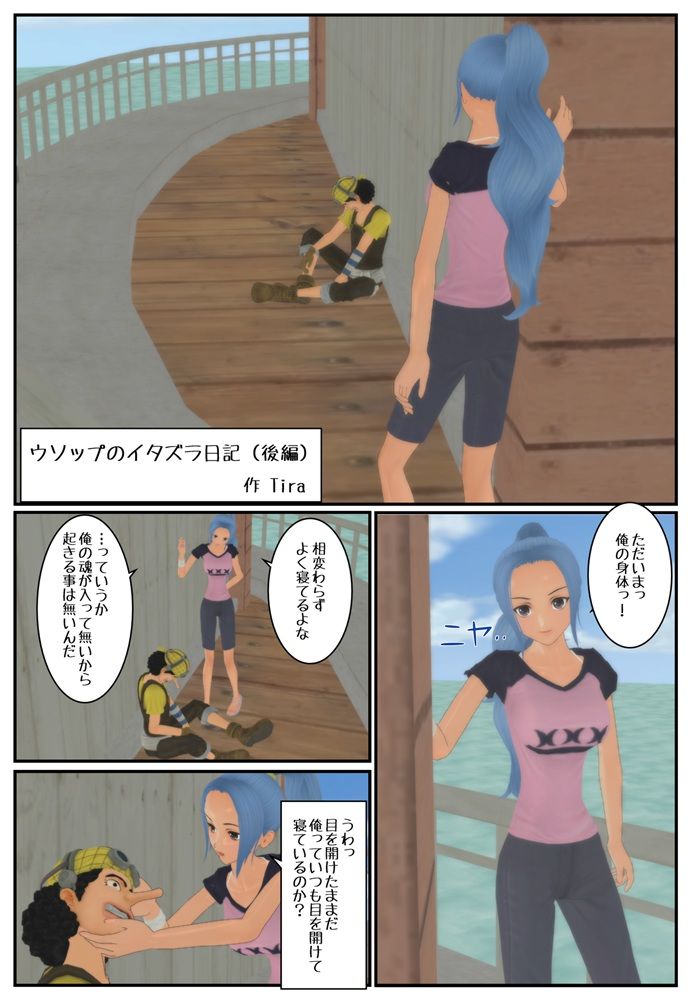 2015年05月16日 ウソップのイタズラ日記(後編) 前編の続きです。 ビビの身体を乗っ取ったウソップが、自分の身体を相手にあんな事やこんな事をします。 でも、子供が生まれる行為はしなかったようですw ワンピースが好きな方については、この内容を不快に感じるかもしれませんので、 上記の事を承知の上、自己責任で閲覧ください。 < 前の記事次の記事 > コメント コメント一覧 (5) 1. ナポリ 2015年05月16日 22:54 サイコーでしたね!次回作は女の子同士で…っていうのもみてみたいです これからも頑張ってください! 2. daice 2015年05月16日 23:00 まさか鼻を使うとは・・・!おみそれいたしましたw 3. Tira 2015年05月16日 23:59 >ナポリさん ありがとうございます。 女性同士も個人的には好きなんですけど、作品レベルまで作るのは時間が掛かりそうです。 実は、ちょっとだけ作っていたんですけどね! >daiceさん そうなんです。 今回は鼻を使いました。 でも、ほんとは自分の身体に戻ったとき、鼻の穴に愛液がしこたま入っているでしょうから大変な事になっているのだと思います。 痛いとかいうレベルじゃなかったりしてw 4. モカ 2015年05月17日 06:55 うそっぷブラックだね。 鼻も気持ちいのかな? 5. Tira 2015年05月17日 08:57 >モカさん イタズラが過ぎますね(^^ 私も鼻が長かったら一度体験してみたいですw コメントフォーム 名前 コメント 記事の評価 リセット リセット 顔 星 情報を記憶 コメントを投稿する トラックバック