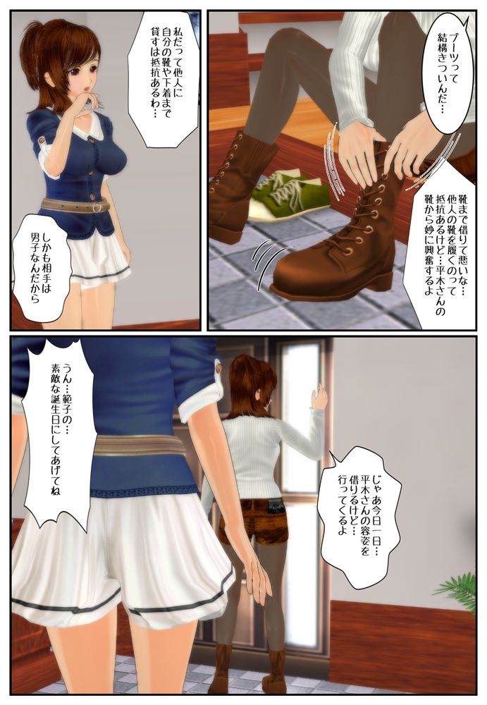 2015年09月27日 サプライズ(その2) その1の続編です。 範子の誕生日…サプライズとして用意したものは!? < 前の記事次の記事 > コメント コメント一覧 (9) 1. 匿 2015年09月27日 14:24 最高! 続きが気になる作品です 2. げすと 2015年09月27日 15:12 色んな展開が出来そうですね! どっちの女の子も可愛いです! 3. Tira 2015年09月27日 20:39 >匿さん ありがとうございます。 次は本番に突入予定です。 早く掲載出来たらいいのですが(^^; >げすとさん そうですね! ストーリーはほぼ決めているのでそのまま突き進みますけど、終わり方を複数考えているので、どれにしようか迷っています。 どの終わり方になっても、ダークにはならないですけど(^^; 4. ts-daisuki 2015年09月27日 23:18 いよいよ、変身人形の使い方応用編に突入ですね。 使う人数が増えると、元に戻すのに手間がかかるでしょうが、その中に元に戻りたくないと言う人が出てきたら、ダークな展開に発展しそうです。 5. Tira 2015年09月27日 23:29 >ts-daisukiさん はい。 今回登場する人形は1体だけですので、みんなで使い回さなければならないため、元に戻る事を拒まれたら困りますね! 強引に人形の鼻を押させるしかなさそうです(^^; 6. divi 2015年09月29日 05:45 Hi Tira. How this doll work? Girl twin in begining is realy boy? Thanks. 7. あ 2015年09月29日 07:00 私は平木さんの容姿と服装が好みなので、まだ平木さんの容姿を使用する場面があると嬉しいです。 それと平木さんの容姿をどのように手に入れたか気になります。彼女自身は存在しているので、偽の容姿なのでしょうか? 8. サスガタイガ 2015年09月29日 10:03 なるほど。変身人形だったのですね。 男女入れ替わりもののも楽しみです。 9. Tira 2015年10月02日 23:42 >diviさん こんばんは! 女性の人形の鼻を押すと、その容姿をコピーできるストーリーです。 男性が女性の人形の鼻を押して、容姿をコピーしています。 >あさん コメントありがとうございます。 どうなるでしょうね!? 彼女がもう一度登場するか、私にもまだ分からないです(^^ この人形は、最初はのっぺらぼうで男女の区別が無い設定です。人間の髪の毛を入れることによって初期化され、それ以降は鼻を押すと人形の容姿と入れ替われるようになっているんですよ! だから、最初に平木さんの髪の毛を入れて、平木さんの人形を作ったんです(^^ >サスガタイガさん はい、変身人形でした(^^ 次回は容姿を入れ替えたまま楽しんでもらおうと思っています。 コメントフォーム 名前 コメント 記事の評価 リセット リセット 顔 星 情報を記憶 コメントを投稿する トラックバック