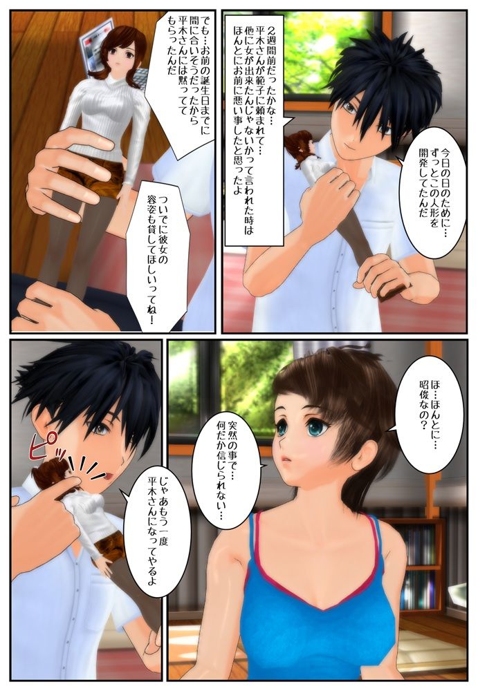 女性の人形の鼻を押すと、その容姿をコピーできるストーリーです。