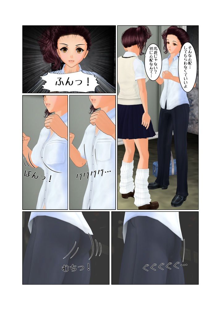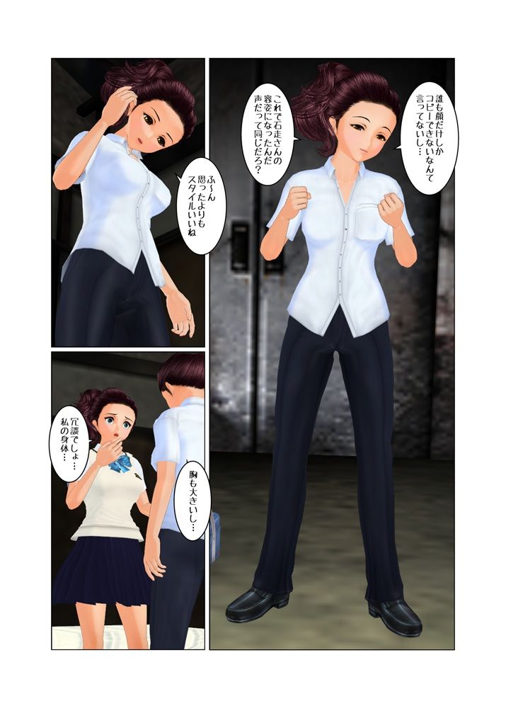 服ごと変身するパターンもありますけど、今回は女性の身体に男性の制服と言う素材を頂いていましたので、あえて彼女の服を手に入れるパターンにしました。