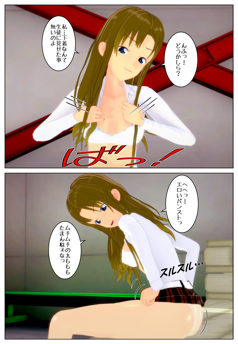 「蟹股に足を開くなよ。先生の雰囲気が壊れるだろ! 早く脱いでオナニーしろよ。磯川先生のオナニーを忠実に再現してくれよなっ」
