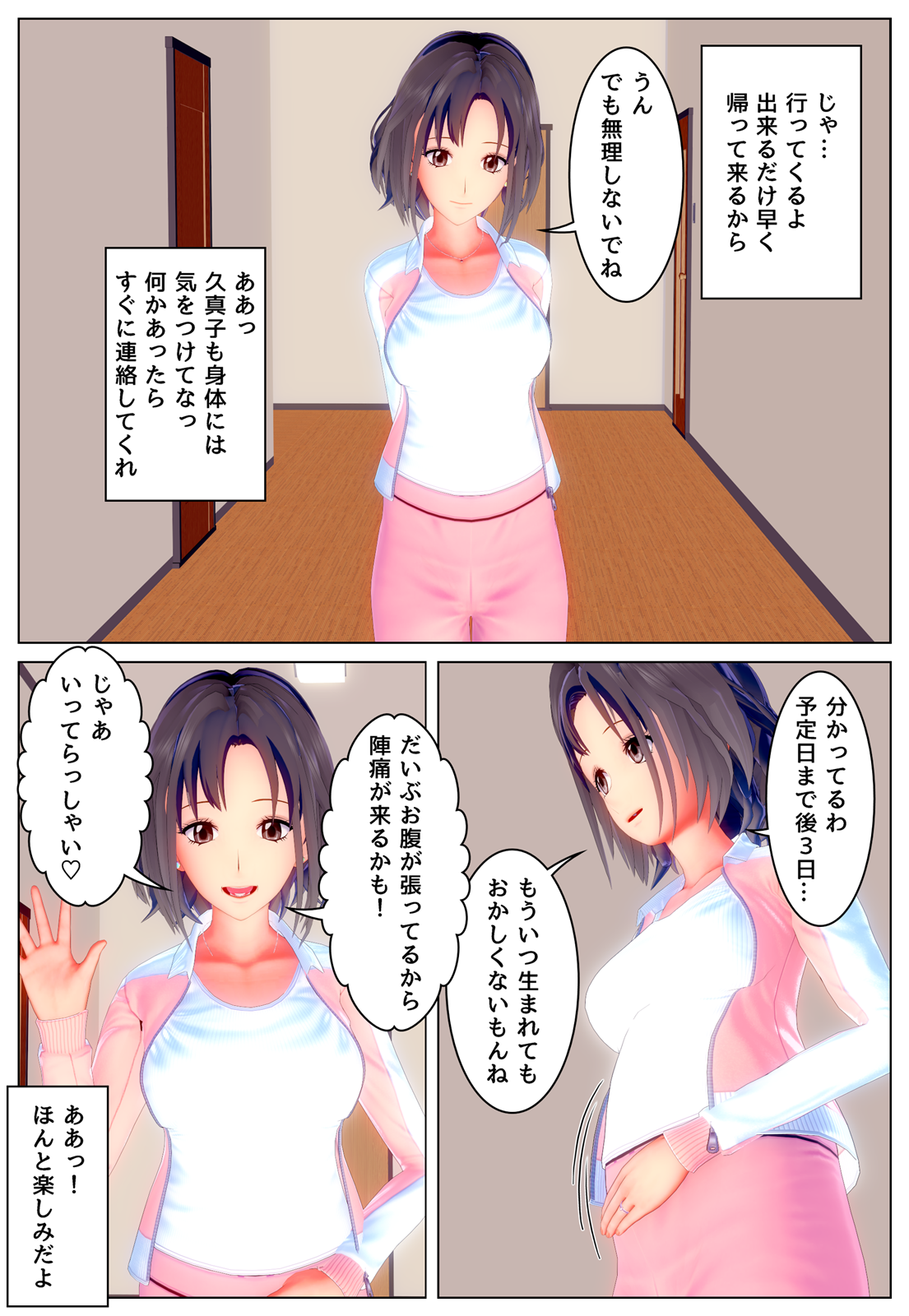 この作品はこれで終了となりますが、妊婦の妻と入れ替われる時代が来た際の一シーンを作っているので、それを掲載しておきます。