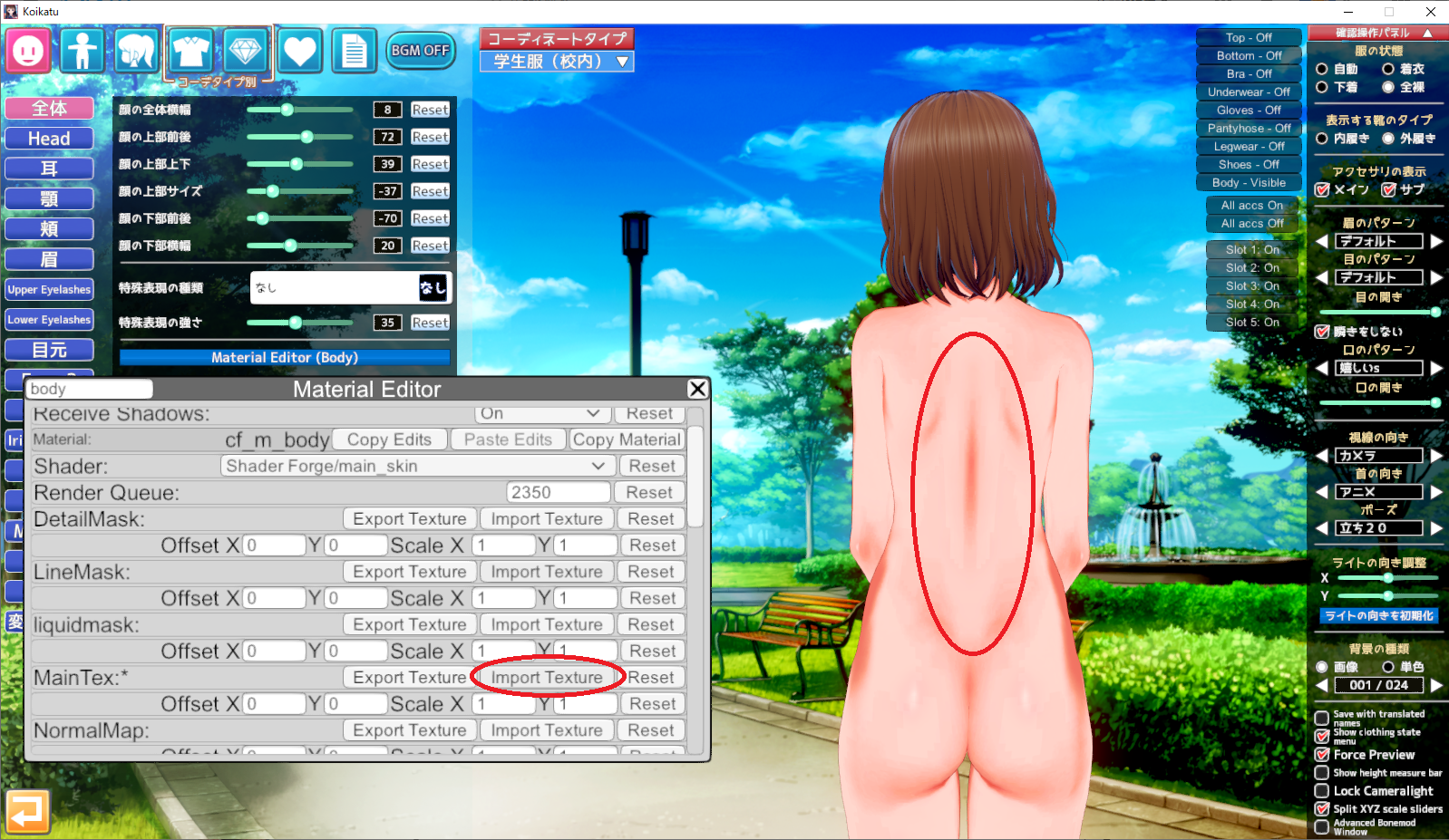 するとキャラの身体に、背中に穴の間ファイル(皮膚:スキン)が読み込まれます。